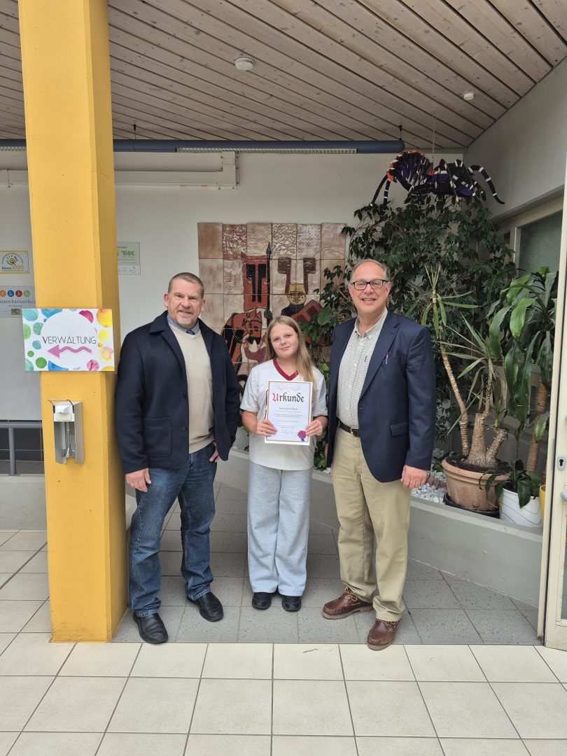 Gleich zu Beginn des Schuljahres galt es, an der Grund- und Mittelschule Wolframs-Eschenbach ein freudiges Ereignis zu begehen: Mit Marie-Sophie Blank aus Oberrammersdorf durfte 1. Bürgermeister und Schulverbandsvorsitzender Michael Dörr den – gemessen an der Reihenfolge der Anmeldungen – 400. Schüler an der Schule der Parzivalstadt begrüßen. Die „Schallgrenze“ von 400 Schülern geknackt zu haben – bei einer weiter steigenden Entwicklung der Schülerzahlen – ist ein wenngleich nur symbolisches, doch deutlich sichtbares Zeichen für den Erfolg und das Wachstum des Schulstandortes.