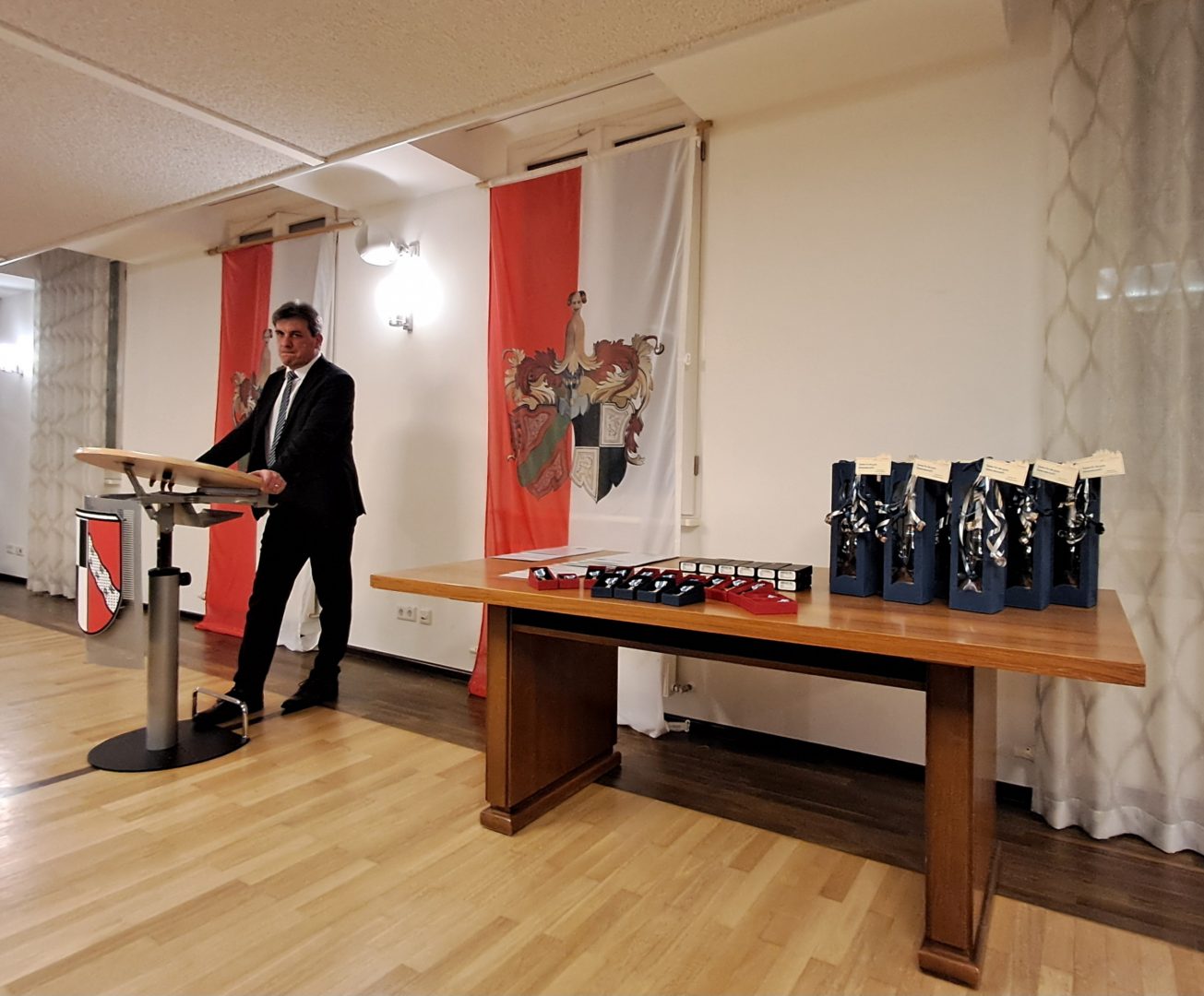 Das Rentamt in Windsbach bot den perfekten festlichen Rahmen für die Ehrungen der FFW Windsbach. Zu Beginn des Abends begrüßte Bürgermeister Matthias Seitz Landrat Dr. Jürgen Ludwig, Kreisbrandinspektor Christian Schmidt, Kreisbrandmeister Manuel Wechsler und 2. Bürgermeister Norbert Kleinöder.