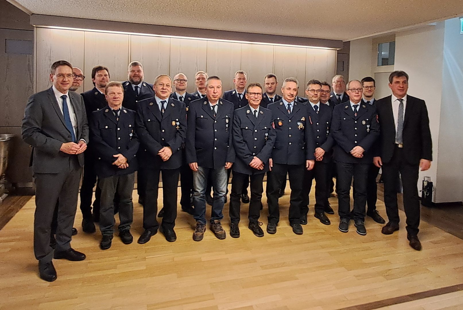 Für 40 Jahre ehrenamtliche Tätigkeit erhielten Werner Disterer, Rainer Martens, Bernd Weglöhner, Tomas Scheuber, Siegfried Willer, Leonhard Halter, Helmut Beyerlein, Thomas Gilch, Claus Höfling, Konrad Kerling, Martin Kerling sowie Stefan Schmidt das Ehrenzeichen des Bayerischen Innenministeriums in Gold. Als Dankeschön erhielten die Gold-Jubilare zusätzlich eine Woche Urlaub im Feuerwehrheim Bayerisch Gmain. Für 25 Jahre wurde Harald Bößenecker, Christian Ernst, Gerhard Böhm, Klaus Leuzmann und Stefan Wagner das Ehrenzeichen überreicht.