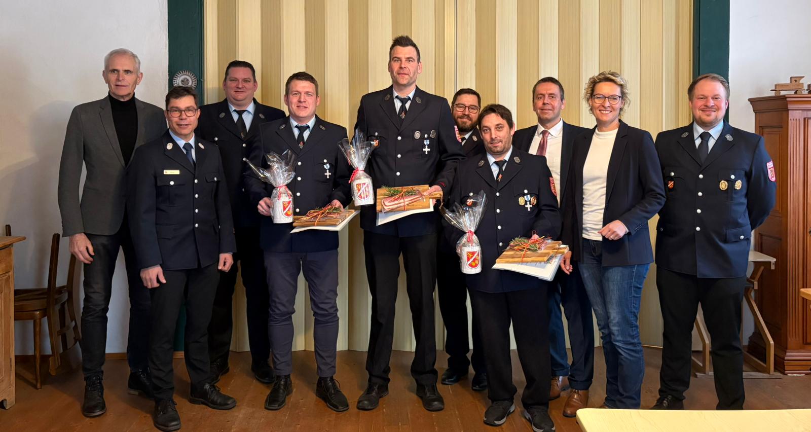Nach den Ansprachen der Ehrengäste wurden die Ehrungen und Beförderungen verdienter Mitglieder der Feuerwehr vorgenommen. Für 25 Jahre aktiven Dienst wurde den Kameraden Hanns Günther, Michael Seubelt und Johannes Weid das Feuerwehrkreuz in Silber verliehen. Als neues Mitglied konnte Daniel Ortner begrüßt werden. Beim traditionellen Kreisenlassen des Kommandantenhuts kamen 500 € für die Jonas-Gabriel-Kinderkrebshilfe e.V. zusammen. Die Spende ist in diesem Jahr für eine Familie in Abenberg bestimmt, die gleich mit mehreren schweren Schicksalsschlägen zu kämpfen hat.