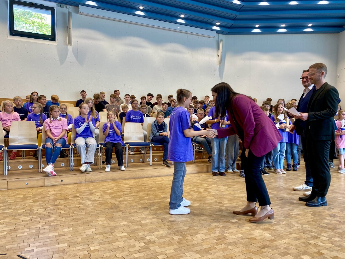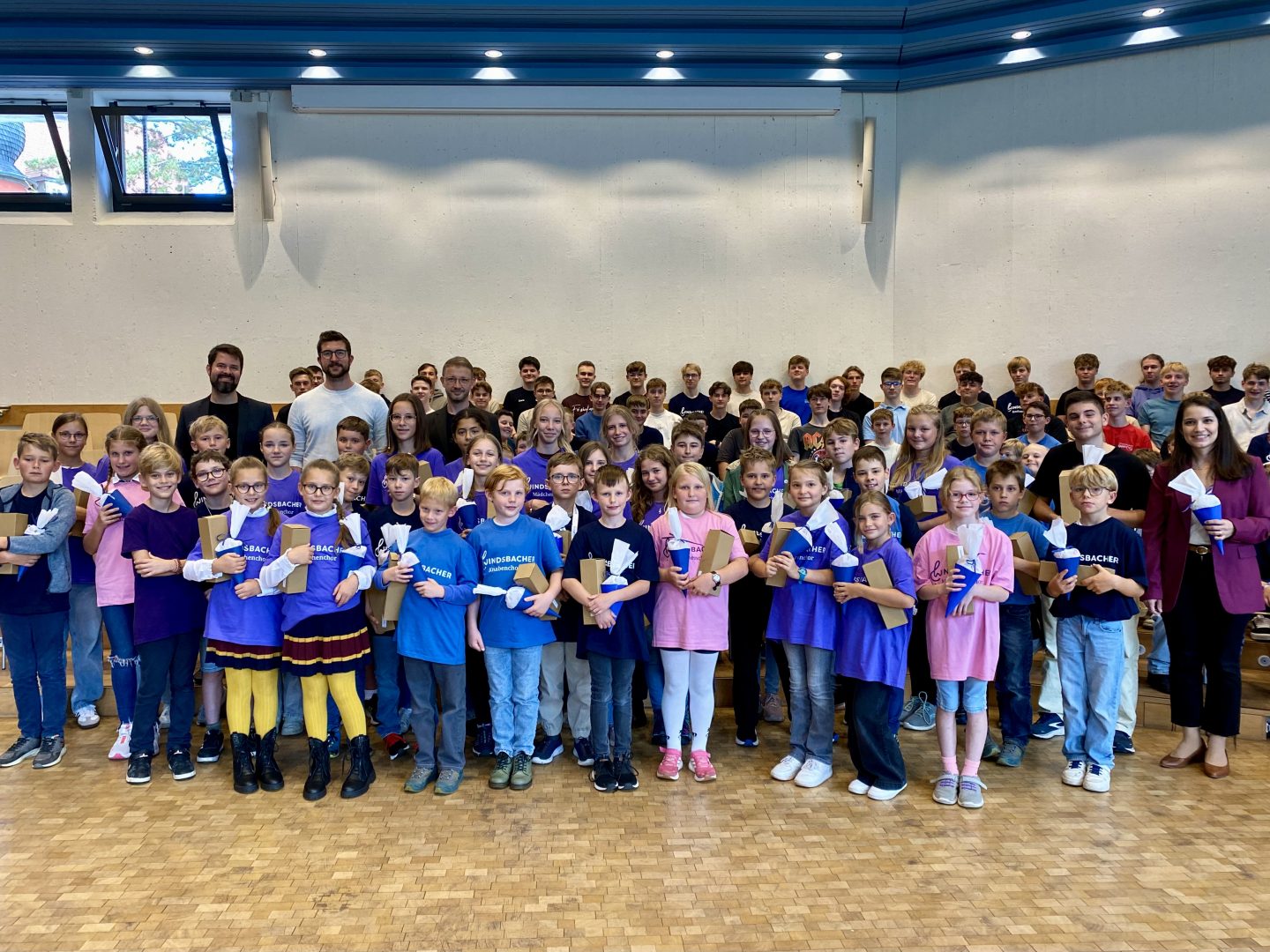 Mit einem feierlichen Empfang im Chorsaal begrüßte der Windsbacher Campus am 15. September seine neuen Sängerinnen und Sänger. Erstmals in der Geschichte starten in diesem Schuljahr nicht nur Knaben, sondern auch Mädchen ihre musikalische Laufbahn in Windsbach. Insgesamt 38 Kinder – 19 Mädchen und 19 Jungen – wurden von Direktor Thomas Babel, dem künstlerischen Leiter Ludwig Böhme, der Leiterin des Mädchenchors Claudia Jennings, Erziehungsleiter Alfred Frosch sowie Vertreterinnen des Elternbeirats herzlich willkommen geheißen. Als Zeichen der Aufnahme erhielten alle Neuankömmlinge eine kleine Schultüte, ein Windsbacher T-Shirt und eine persönliche Trinkflasche mit Namensgravur.