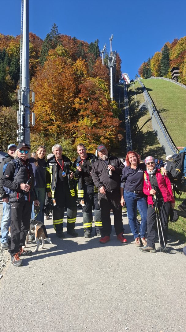Im Herbst 2025 startete unser Läuferteam zusammen mit einem kleinen Fanclub von Freunden und Kameraden Richtung Oberstdorf. Leider war durch die Unachtsamkeit einer Autofahrerin die Fahrt für unseren Kommandanten samt dessen Familie kurz vor dem Ziel schon zu Ende. Somit musste wenige Minuten vor dem Lauf noch Ersatz gefunden werden – unser 2. Vorstand erklärte sich spontan bereit, das sportliche Abenteuer zu wagen.