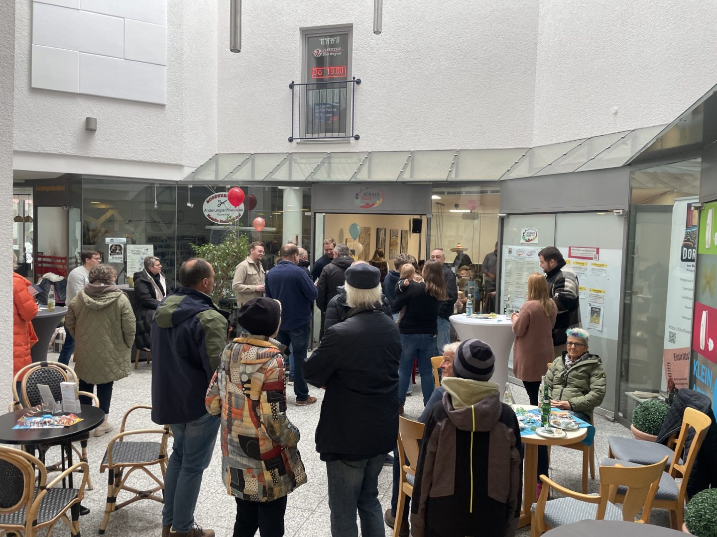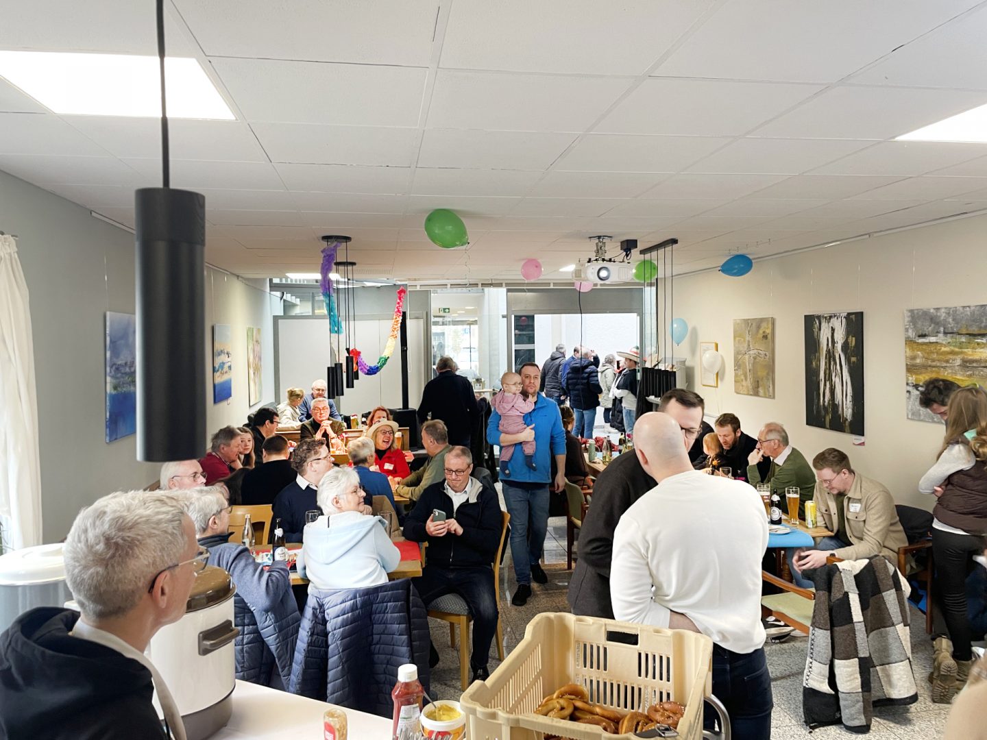 Sämtliche Plätze im Bürgertreff waren belegt, darum nutzten viele Gäste auch den Bereich davor zum Verweilen. In entspannter Atmosphäre ergaben sich zahlreiche Gespräche und ein reger Austausch unter den Anwesenden.