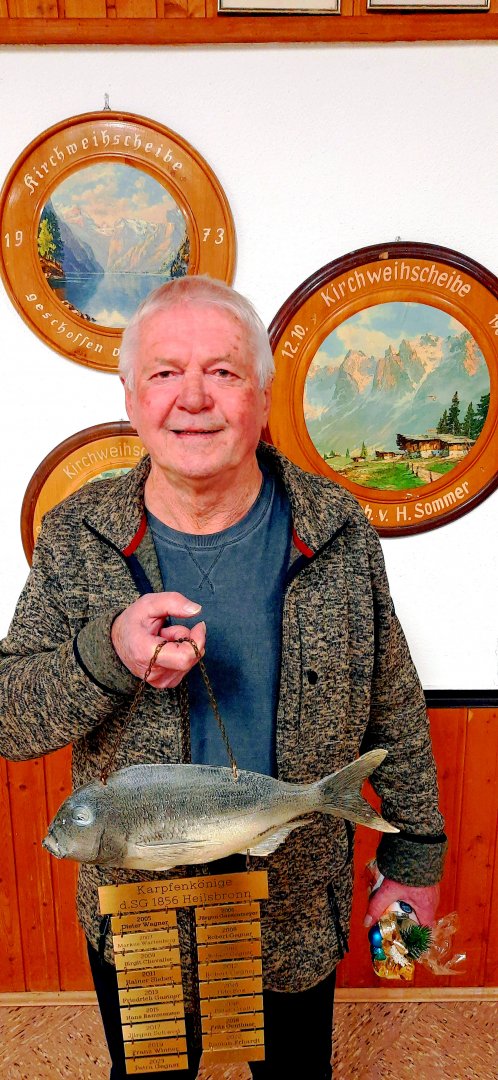 Am Karpfenschießen beteiligten sich 28 Schützen. Geschossen wurde wieder mit dem KK-Gewehr. Neuer Karpfenkönig wurde Walter Gsänger mit einem Zehner, gefolgt von Roman Erhardt mit einem Achter und Reiner Bernecker mit einer Sieben.