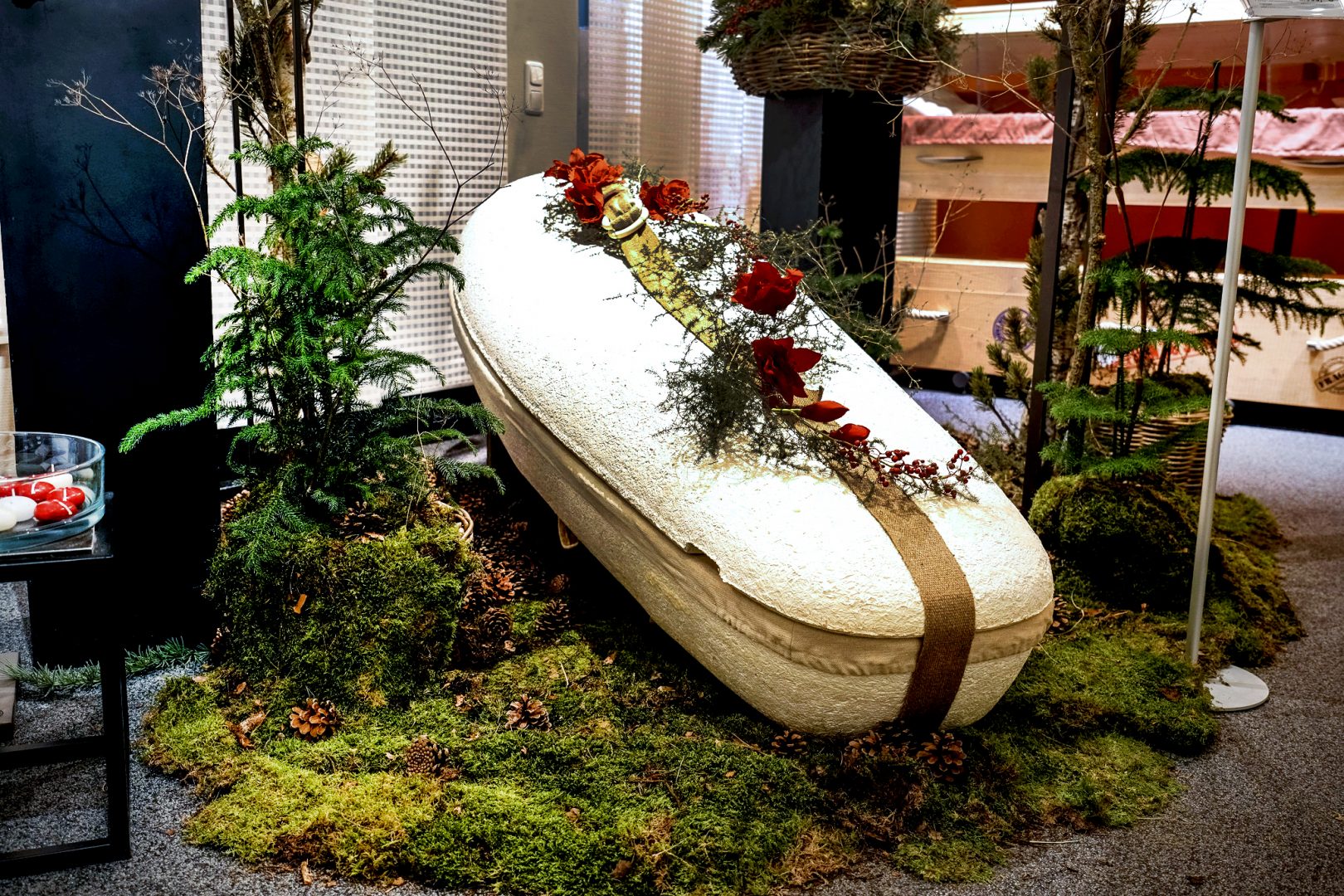 Neben dem Pilzsarg für Erdbestattungen gibt es für Feuerbestattungen zusätzlich die Pilzurne. Beide bestehen aus Pilzmyzel und Hanffasern, sind vollständig biologisch abbaubar und geben die Verstorbenen auf natürliche Weise in die Natur zurück.