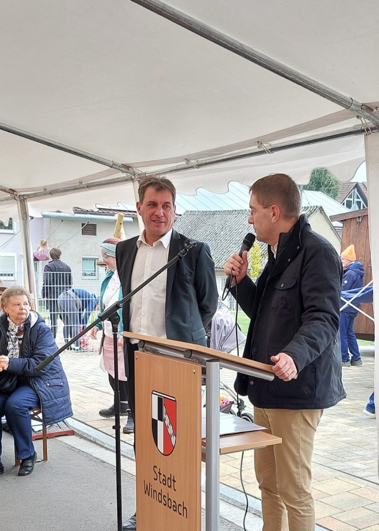 Mit fröhlichem Gesang eröffneten die Kinder des Kindergartens Aurachstrolche Anfang Oktober die Feierlichkeiten zur offiziellen Einweihung des neuen Begegnungsortes in Veitsaurach. Bei herbstlichem Wetter begrüßte Windsbachs Bürgermeister Matthias Seitz zahlreiche Gäste, darunter die stellvertretenden Bürgermeister Norbert Kleinöder und Karl Schuller sowie Vertreterinnen und Vertreter aus Politik, Verwaltung und Bürgerschaft.