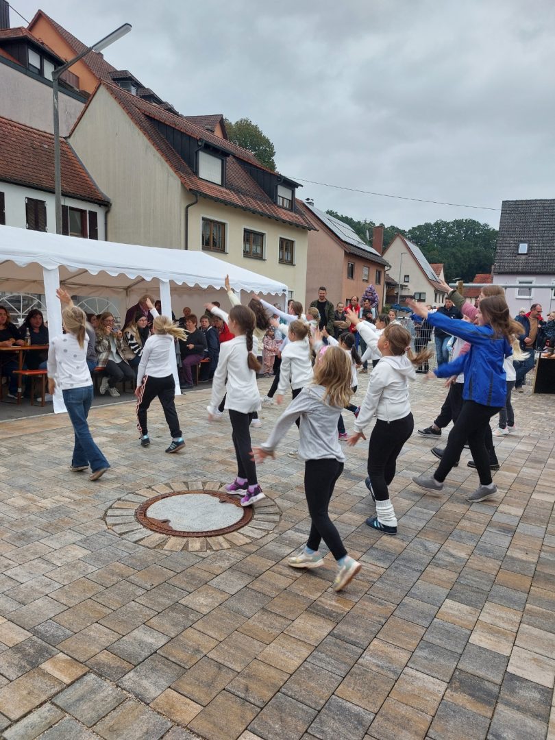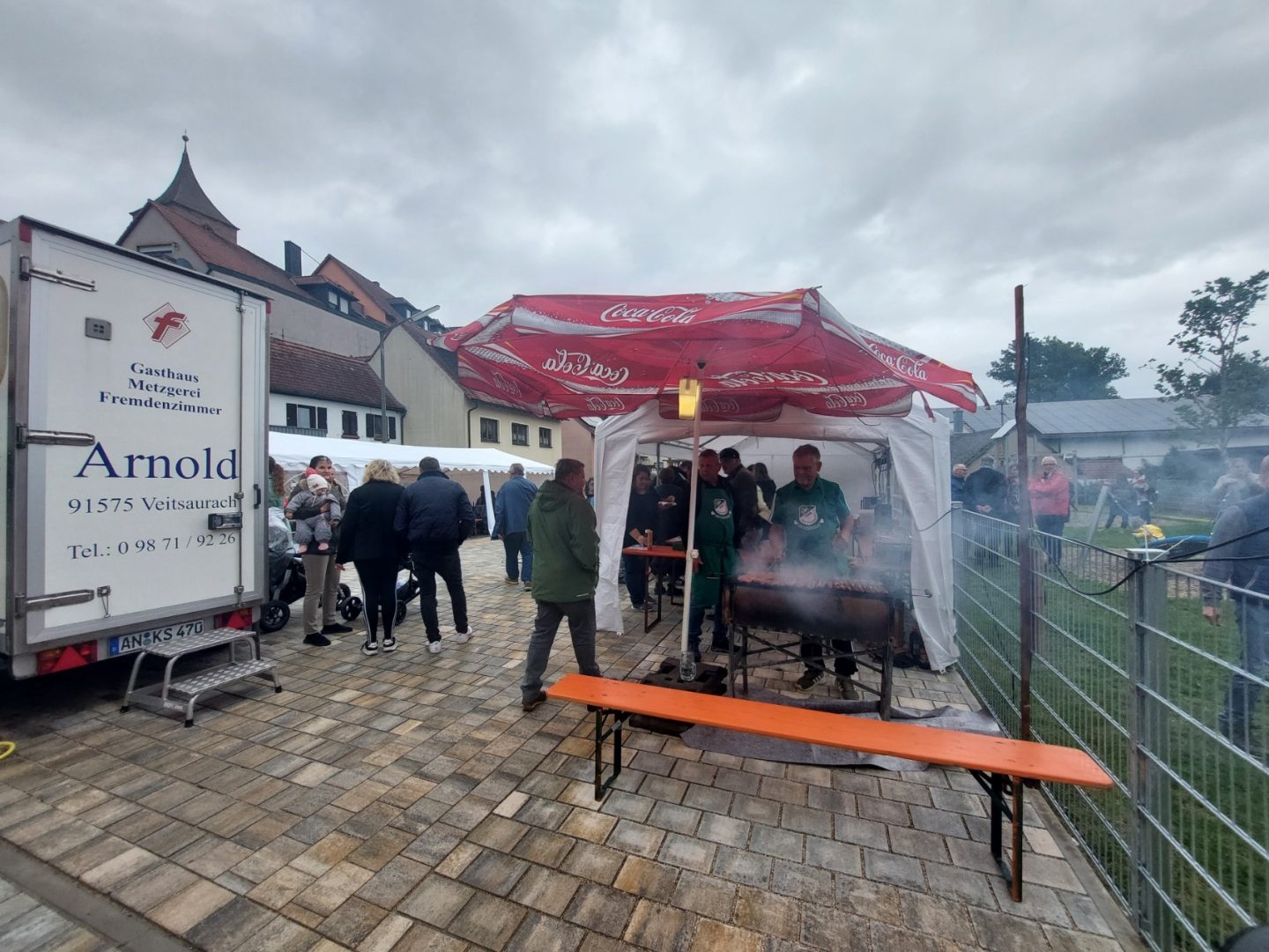 Die Veitsauracher feierten ausgelassen ihren neuen Platz der Begegnung. Die DJK übernahm das Grillen, während Kaffee und Kuchen von der Theatergruppe organisiert wurden. Für das Durstlöschen sorgte die Feuerwehr, und später übernahmen die Kerwa-Buam und -Madli den Barausschank.