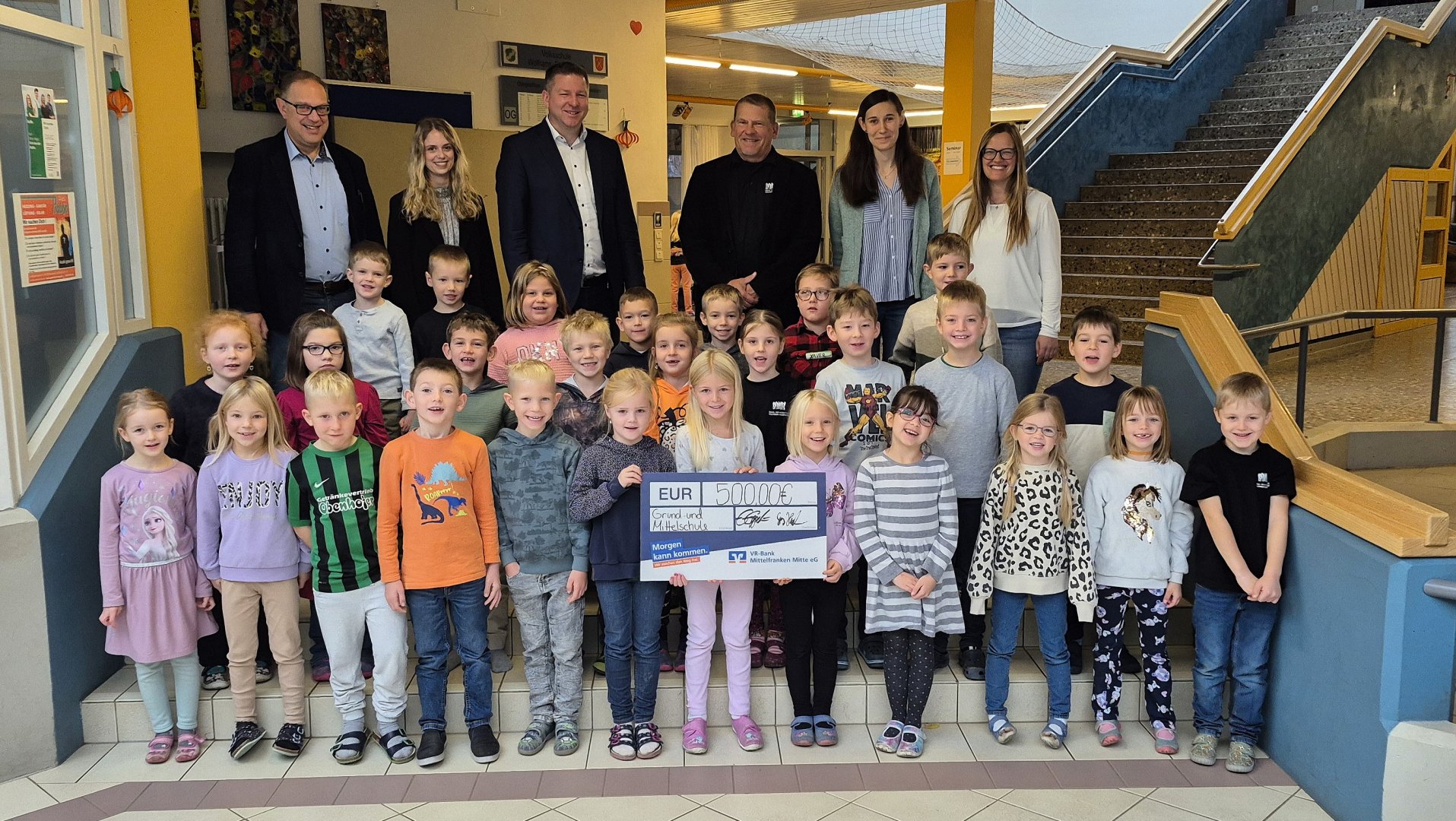 Grund zur Freude hatten die Schüler der Grund- und Mittelschule Wolframs-Eschenbach Anfang November – nur wenige Tage nach den Herbstferien bekamen sie Besuch von Georg Heidingsfelder, Regionalleiter, und der Geschäftsstellenleiterin vor Ort, Eva-Maria Eppelein, die ihnen symbolisch einen Scheck über 500 Euro überreichten.