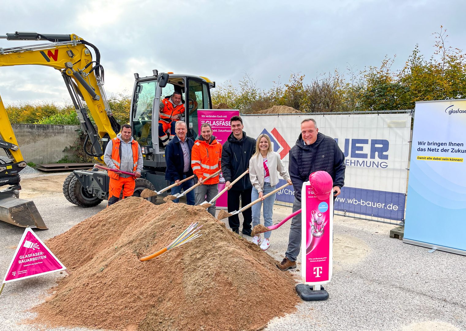 Isache Ionut (Bauarbeiter Walter Bauer GmbH & Co. KG), Pavel Cristinel Copcea (Bauarbeiter Walter Bauer GmbH & Co. KG), Walter Bauer (Geschäftsführung Walter Bauer GmbH & Co. KG), Andreas Kienast (Bauleitung Walter Bauer GmbH & Co. KG), David Mai (Baubegleitung Telekom), Sonja Korn (Kommunalberaterin Glasfaser Telekom), Christoph Schmoll (1. Bürgermeister)