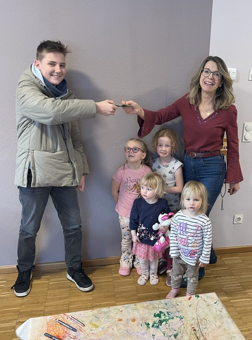 Statt Glaskugeln hingen jetzt Tüten mit den Geldspenden und auch manche Süßigkeiten in den Zweigen der ausgedienten Christbäume. Dadurch konnte die Sammlung zügig durchgeführt werden. Nach der obligatorischen Weißwurstbrotzeit wurden die Bäume im örtlichen Sägewerk sinnvoll entsorgt. Unser Dank gilt der Familie Wörlein für die alljährliche Unterstützung. Im Vereinslokal „Zum Fassbinder“ wurde im Anschluss Kassensturz gemacht. Sammler Konstantin Sitzmann übergab den Rekordbetrag in Höhe von 502 Euro an den Großhaslacher Kindergarten Kunterbunt.