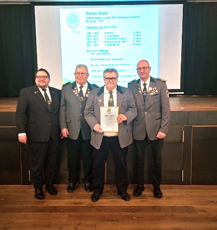 Am „Tag des Ehrenamtes“ wurde Stefan Klein vom Gau Hesselberg zusammen mit einigen anderen für seine unermüdliche Arbeit im Schützenwesen ausgezeichnet. Protektor und Stifter der Auszeichnung, MdL a. D. Gerhard Wägemann sowie Gaupräsident Jens Gärtner nahmen die Ehrung vor.