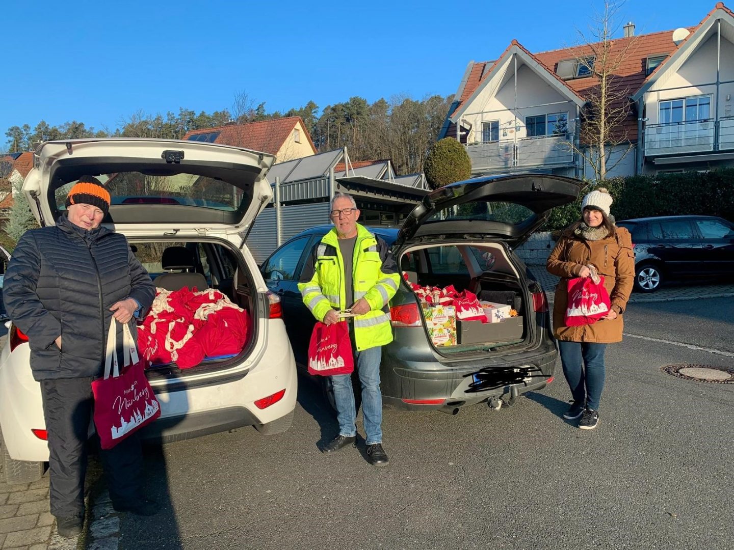 Natürlich ist die ganze Aktion nur möglich durch die große Unterstützung unserer Helferinnen und Helfer im Vorfeld, die auch in schwierigen Zeiten, in denen das Geld nicht locker sitzt, fleißig gebacken und gestrickt haben für die persönlichen Geschenke in den Päckchen. Die Lebensmittelretter erhalten ihre Ware aus den Supermärkten in der Umgebung, die nicht mehr verkauft werden können, deren Mindesthaltbarkeitsdatum kurz vor dem Ablauf stehen bzw. abgelaufen sind oder deren Verpackungen beschädigt sind. Hier gibt es keinerlei Konkurrenz zur Tafel – im Gegenteil, wir arbeiten mit der Tafel oft zusammen. Bei den gemeinsamen Abholungen bedienen sich selbstverständlich die Mitarbeiter der Tafel zuerst, und dann unsere Helfer. Gemeinsames Ziel ist und soll es bleiben, Menschen zu helfen, aber auch Lebensmittelverschwendung bzw. unnötige Lebensmittelvernichtung entgegenzutreten.