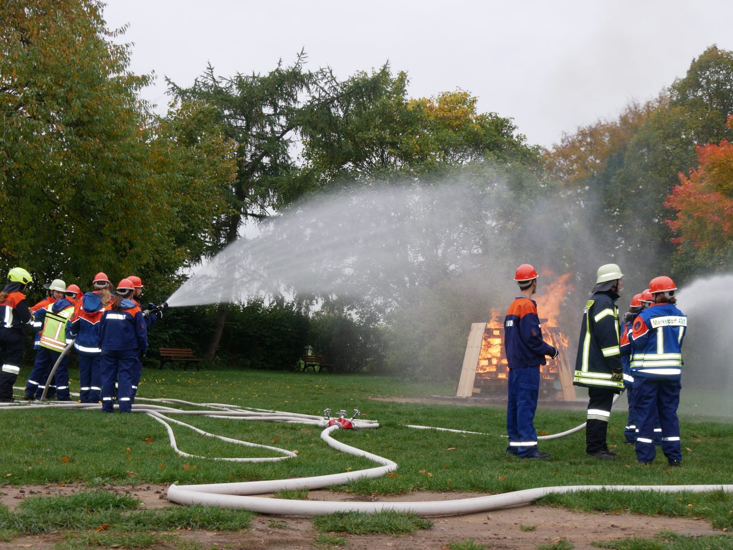 Zwischen den Übungen stand eine Sporteinheit auf dem Programm. Und um vier Uhr in der Nacht wurden die Jung-FFWler zu einem angenommenen Mülltonnenbrand aus den Betten alarmiert.