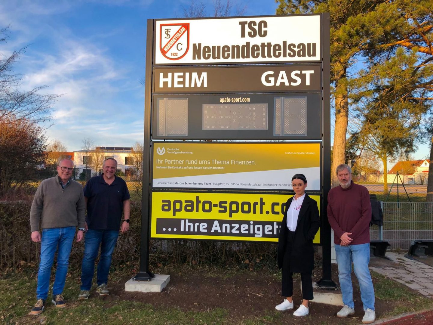 Mitte Januar wurde die neue Anzeigentafel im Alfred-Kolb-Sportzentrum Neuendettelsau offiziell an die Gemeinde übergeben. Das Projekt wurde durch das großzügige Sponsoring von Marcus Schomber realisiert und ermöglicht der Sportanlage nun den Einsatz einer modernen Anzeigentafel.
