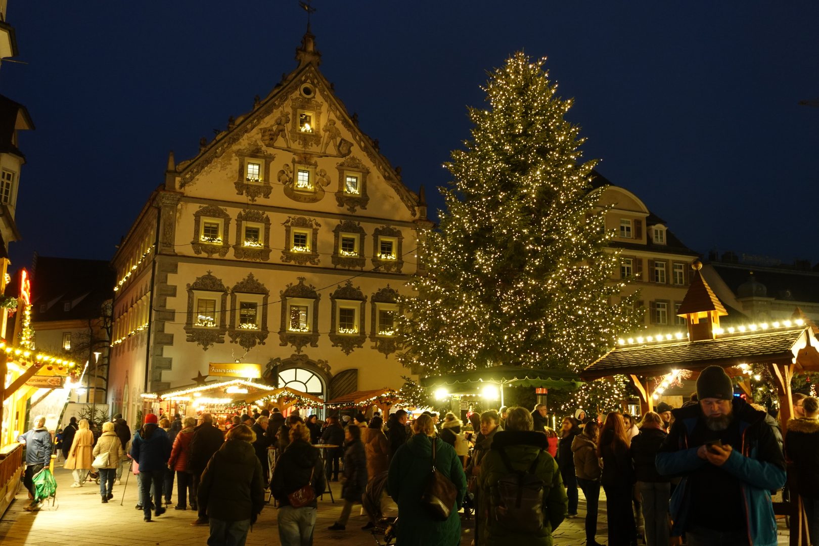 In Ravensburg offenbarte sich der Weihnachtsmarkt von seiner stimmungsvollsten Seite. Besonders bei Einbruch der Dunkelheit verwandelte sich die Altstadt in ein festliches Lichtermeer. Das breite Angebot an Kunsthandwerk, Leckereien und Dekorationen begeisterte.