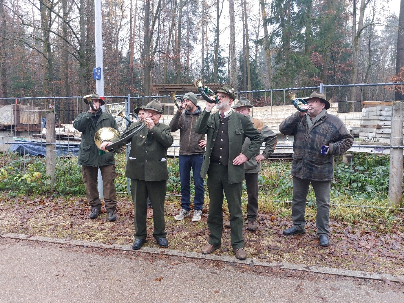 Für musikalische Unterhaltung sorgten die Jagdhornbläser. Gleichzeitig konnten Groß und Klein Stockbrot über dem offenen Feuer rösten, heißen Punsch und Glühwein genießen und sich mit verschiedenen Leckereien stärken. Neben selbstgebackenem Kuchen waren auch herzhafte Angebote wie Wildbratwürste erhältlich. Die gesamte Verpflegung wurde auf Spendenbasis bereitgestellt, sodass jede und jeder nach eigenen Möglichkeiten beitragen konnte.