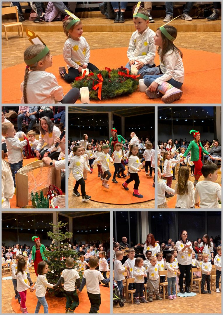 Die Kinder haben sich lange auf ihren großen Auftritt vorbereitet und waren schon voller Aufregung. Die Aufführung erzählte von Willi Wichtel, der vom Nordpol zu uns kam und die Kinder auf eine kleine Reise durch unsere Weihnachtstraditionen begleitete. Im Mittelpunkt standen jedoch die Kinder, die mit ihren Liedern und kleinen musikalischen Szenen zeigten, was für sie zur Weihnachtszeit gehört.